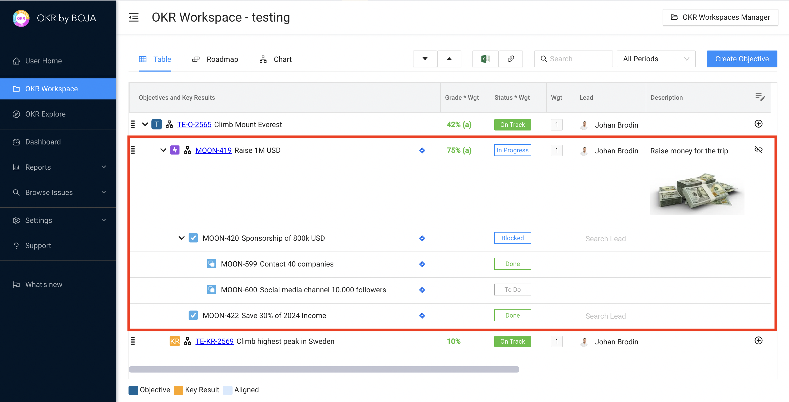The #1 Gantt roadmap Bryntum is now integreted in OKR by BOJA. Enjoy a professional roadmap solution with all bells and wistles.