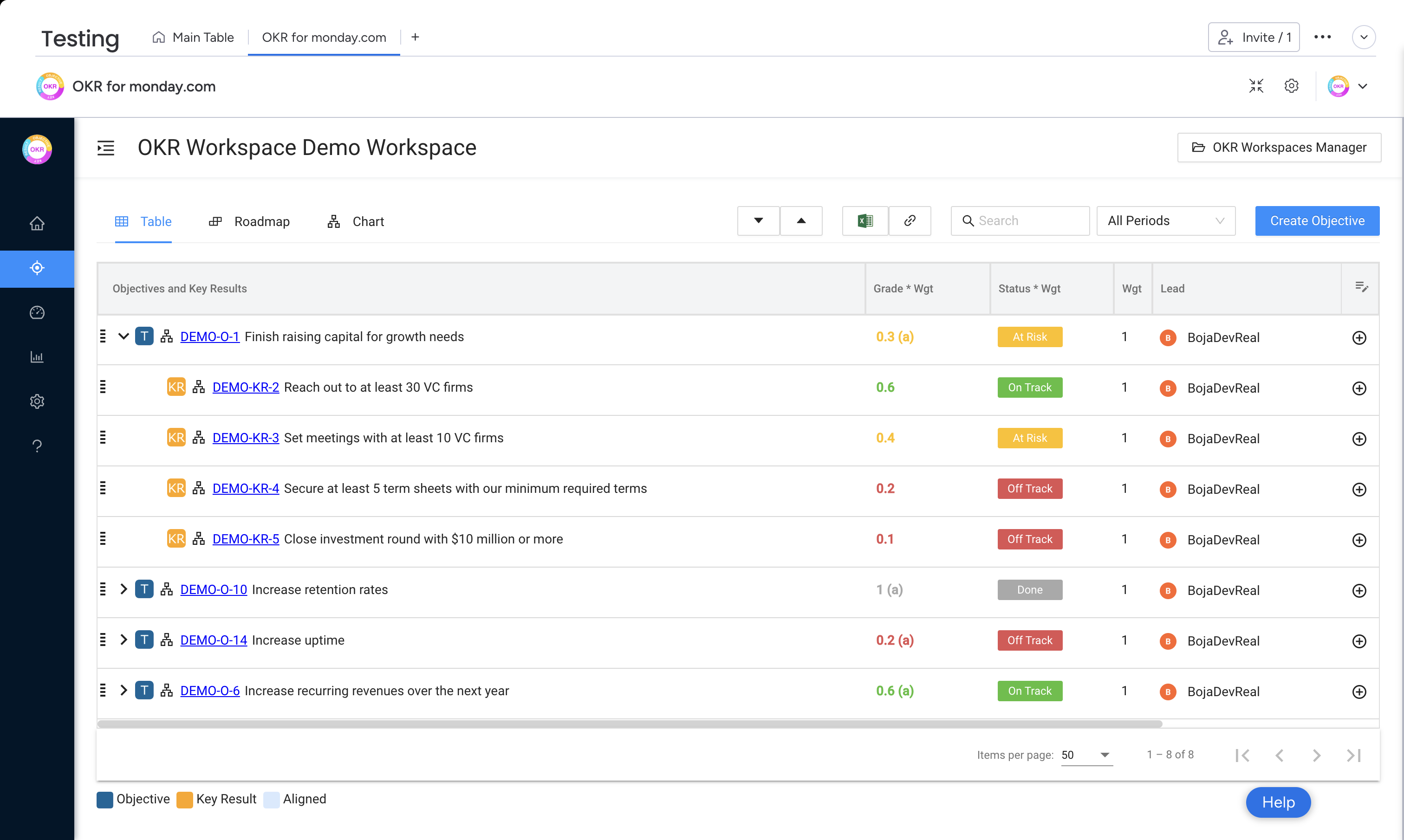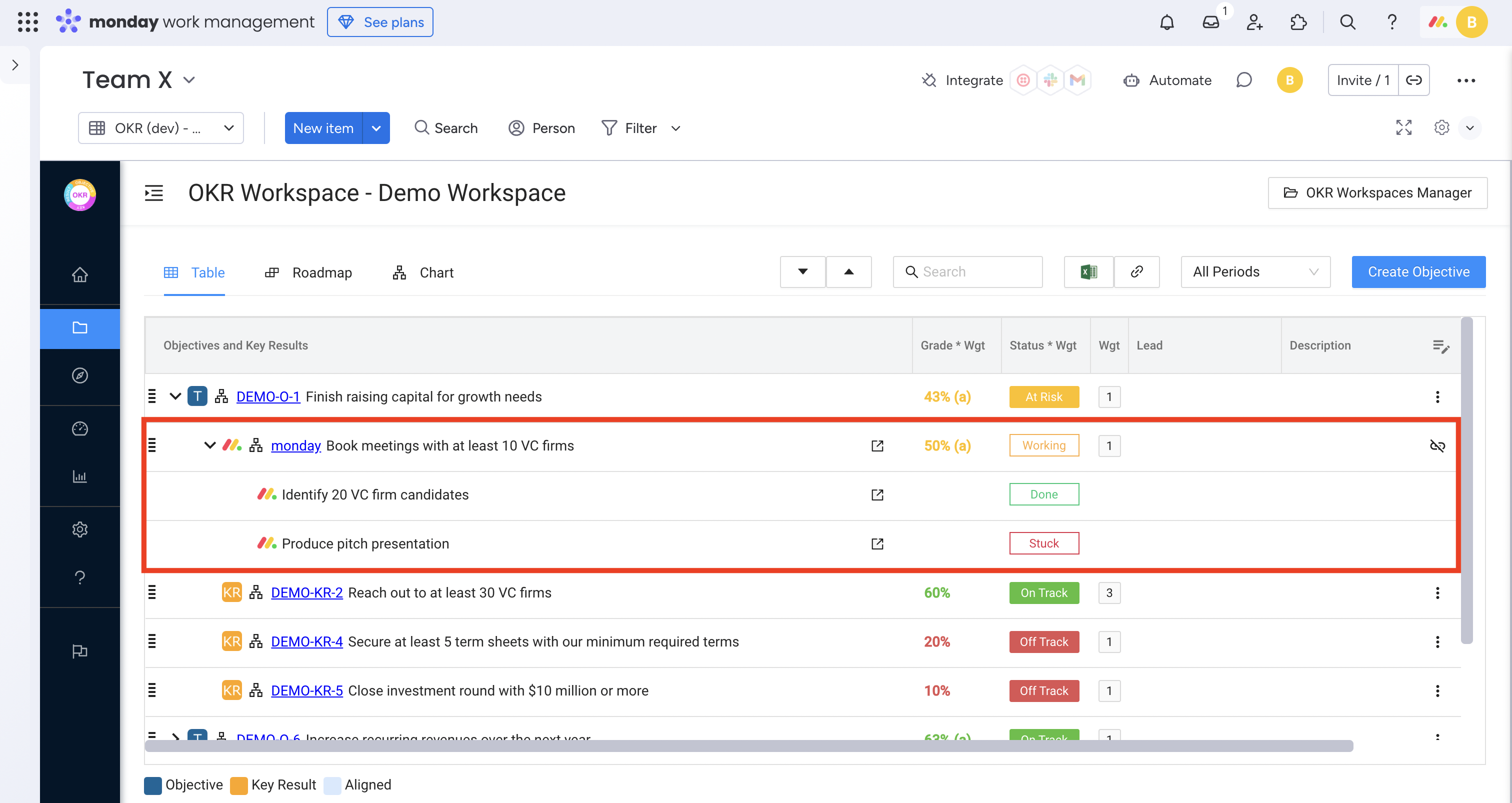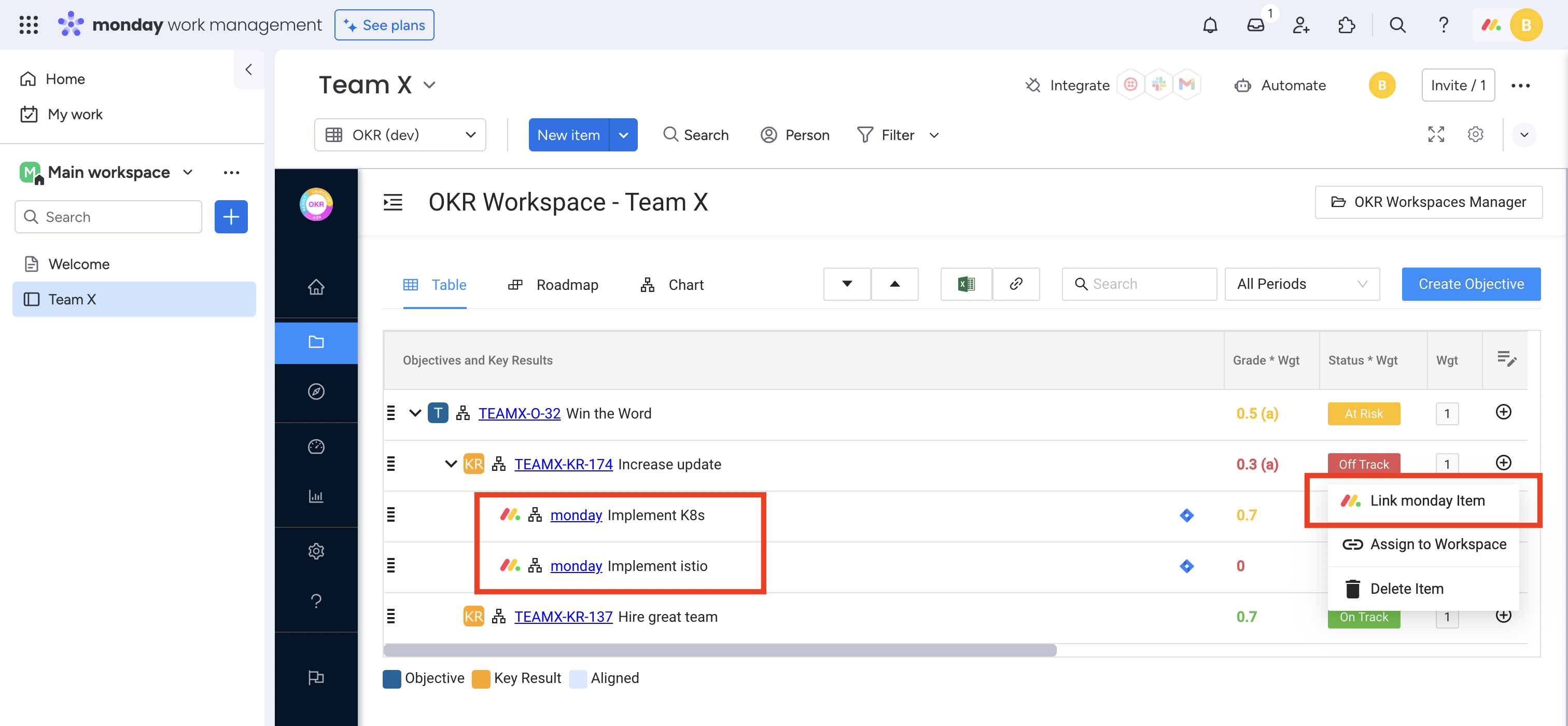 Integration with monday.com have been improved. Link monday items to both Objective and Key Results for full flexibility