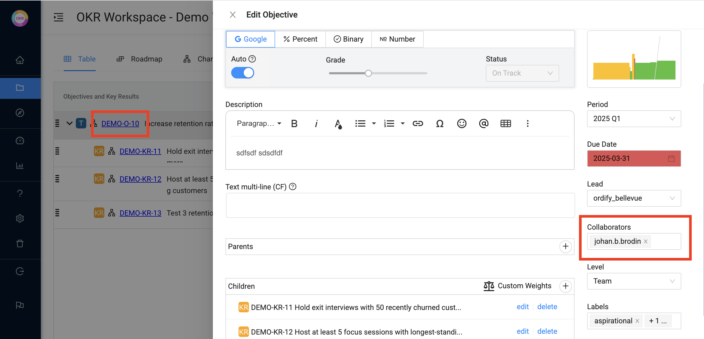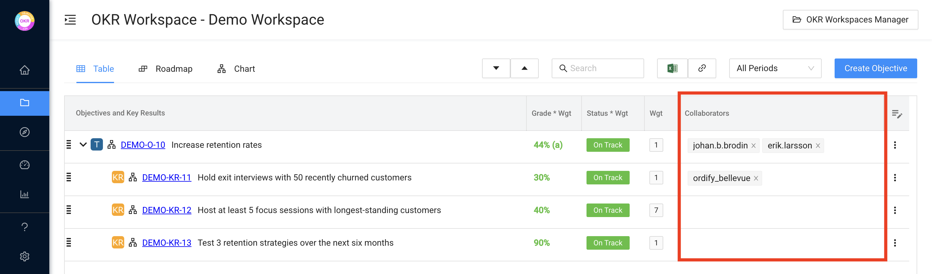 Easily add OKR and Jira work item collaborators. Directly in table view or in the detail drawers.